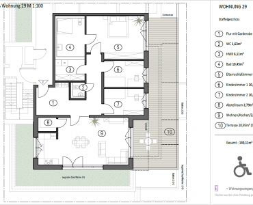 Mit rund 140 m² Wohnfläche bietet diese Wohnung ein großzügiges, hochwertiges Wohnumfeld mit klarer Raumaufteilung, viel Tageslicht und hoher Aufenthaltsqualität. Die Lage im Staffelgeschoss verleiht der Wohnung einen besonderen Charakter und unterstreicht die hohe Wohnqualität im Kastanienhof.