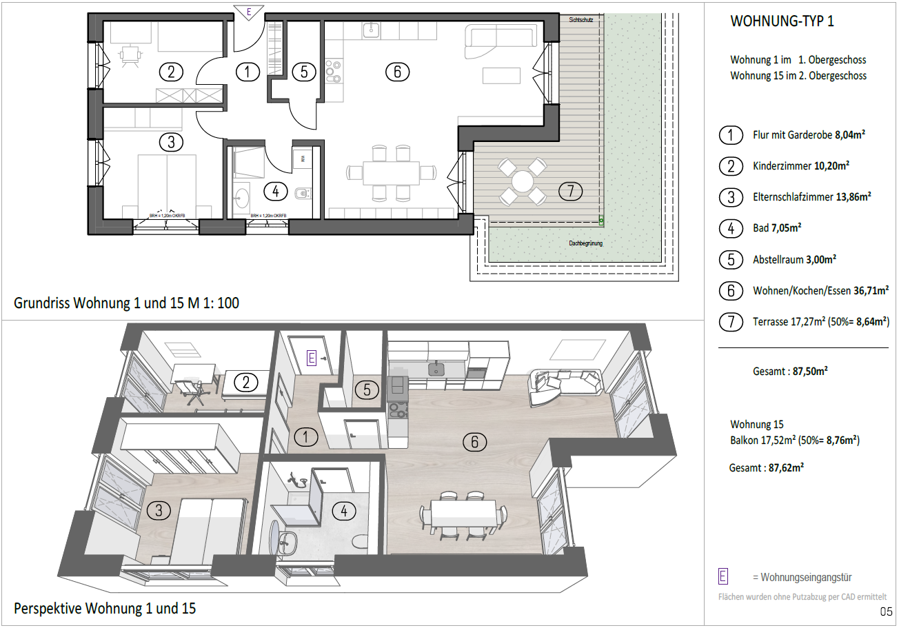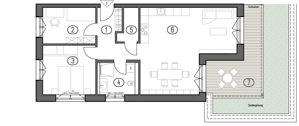 Die durchdachte Planung, klare Raumtrennung und der private Außenbereich machen Wohnung 1 zu einer nachhaltigen und wertstabilen Wohneinheit innerhalb des Projekts.