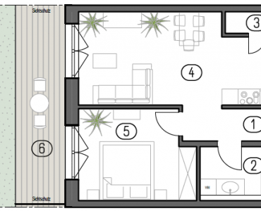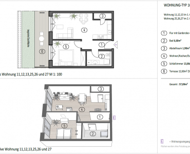 Mit einer Wohnfläche von ca. 57,9 m² bietet dieser Wohnungstyp ein ausgewogenes Verhältnis aus Effizienz, Komfort und Wohnqualität. Er eignet sich ideal für ruhiges, langfristiges Wohnen in einem modernen, nachhaltig geplanten Wohnumfeld.