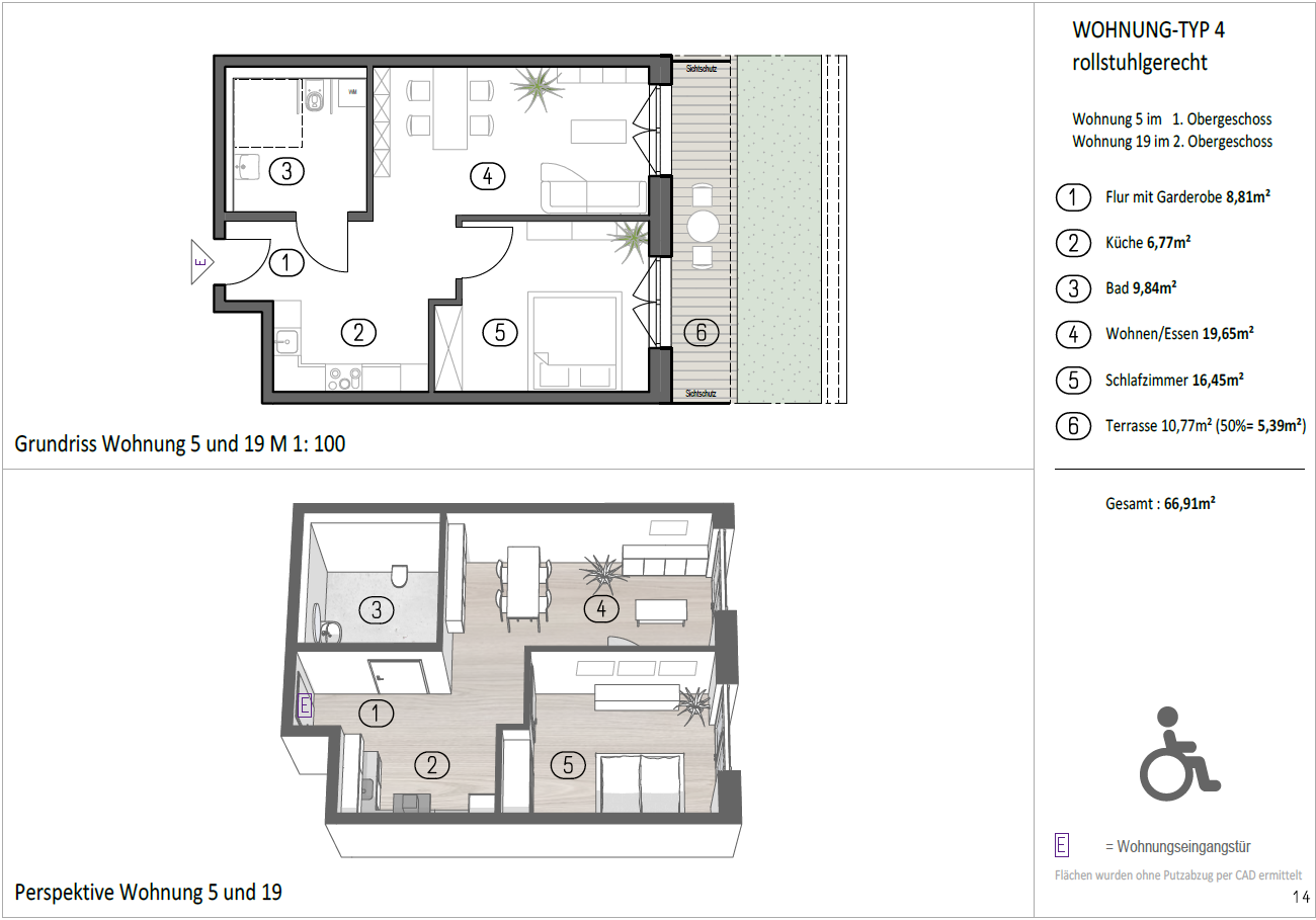 Mit einer Gesamtwohnfläche von ca. 66,91 m² überzeugt dieser Wohnungstyp durch seine effiziente Flächennutzung, Barrierefreiheit und nachhaltige Bauweise. Er bietet eine hohe Wohnqualität, eine durchdachte Grundrissgestaltung und komfortable Voraussetzungen für langfristiges, entspanntes Wohnen.