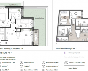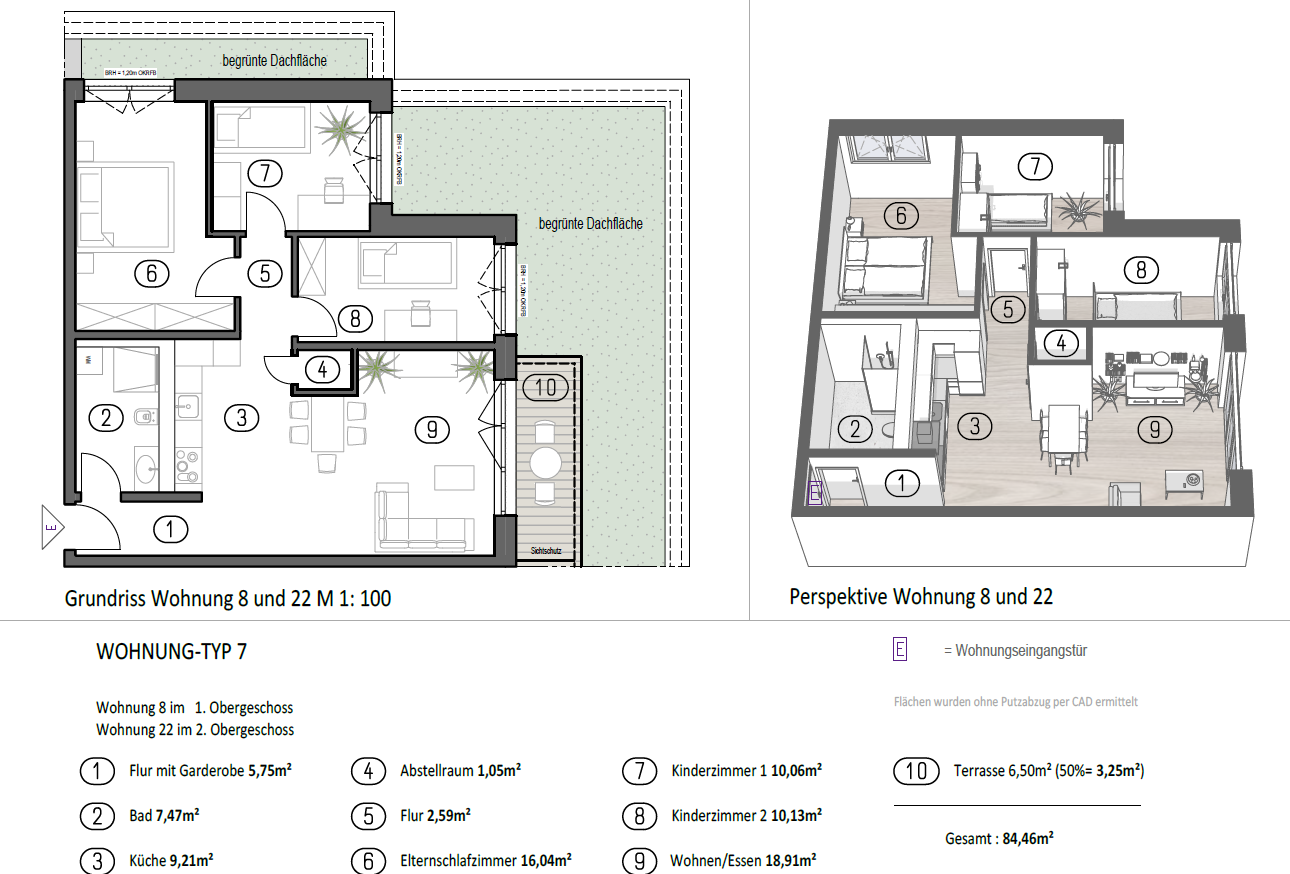 Mit einer Gesamtwohnfläche von ca. 84,46 m² überzeugt dieser Wohnungstyp durch seine klare Raumaufteilung, funktionale Details und vielseitige Nutzungsmöglichkeiten. Er bietet familiengerechten Wohnraum mit durchdachter Raumaufteilung und guten Voraussetzungen für ein komfortables, langfristiges Wohnen.
